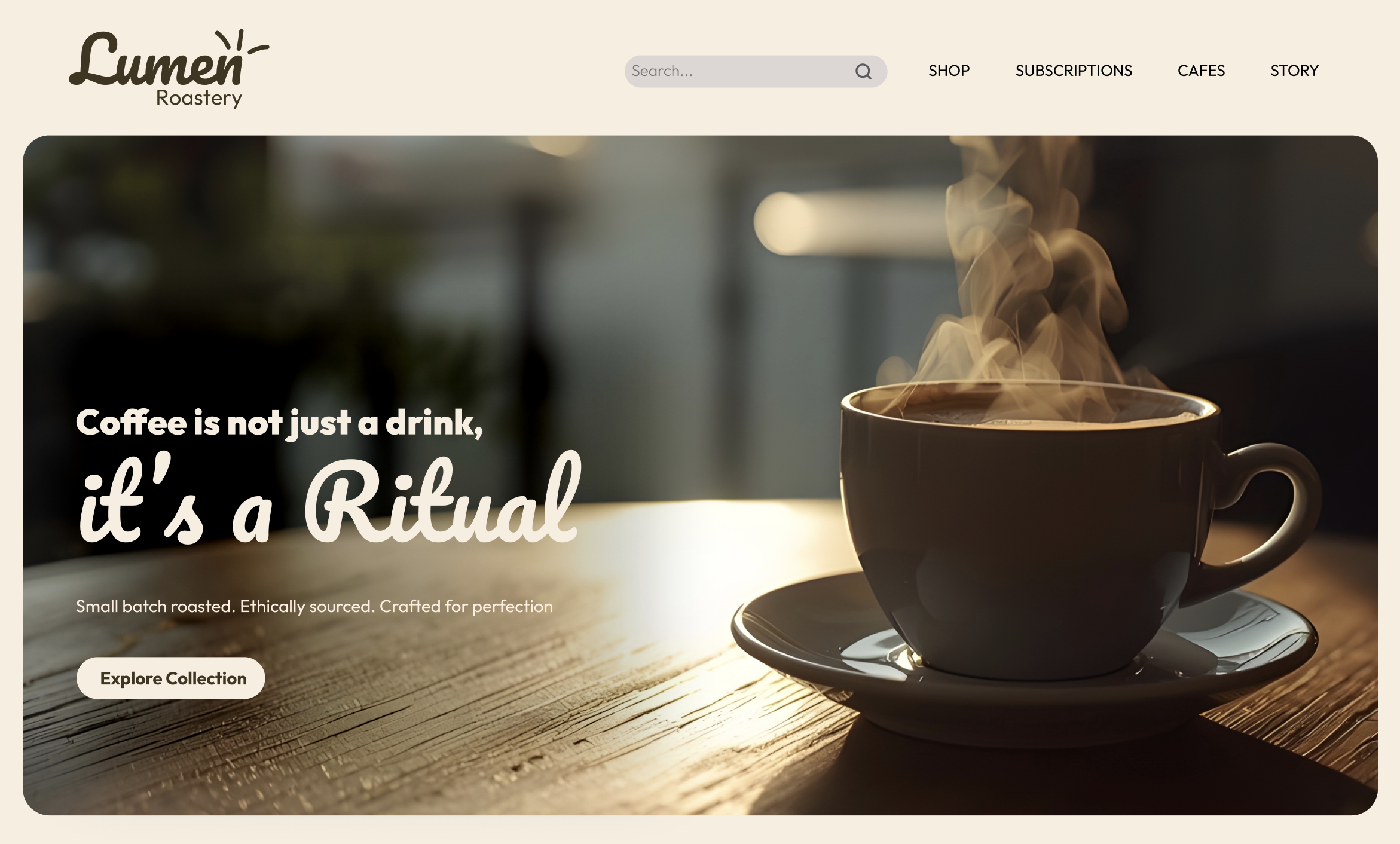 The website was designed to translate the sensory experience of coffee into a digital interface. Generous white space allows the product photography to breathe, while a clear grid structure guides the user seamlessly from discovery to purchase.